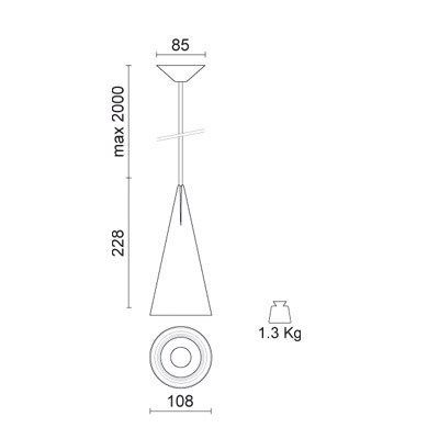 De Iconica hanglamp is er in 3000K en met een ledmodule van 1000lm of 2000lm. Standaard met een gradenbundel van 60 graden.